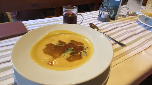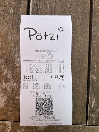 This is a well hidden gem, about a 400m walk from the end of the 431 tram line in Pötzleinsdorf. Well worth the trip out with a great park and hiking trails right behind the restaurant. They have a good local wine selection and very decent food. The pumpkin cream soup was excellent, as were the plum filled dumplings for dessert. We live close by and go here often in the summer. Hours are limited in the fall and I think they close in winter but a top place not many people know of for the summer. Great big tree in the quiet,...