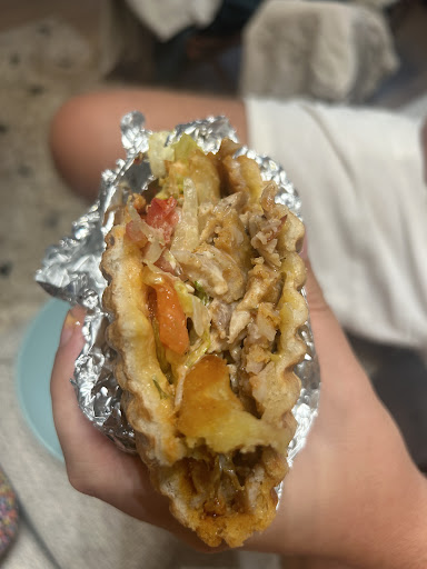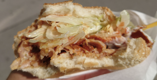 3 Euro für Hühnerkebab, gute Portion, macht satt. wollte Dürüm, wurde aber vom Besitzer vom selbstgemachten, sehr fluffigen Kebabbrot überzeugt. Cheddar im Kebab? beim nächsten mal kost ichs gerne, aber zwecks Geschmackstest mal weggelassen. das Fleisch schön angebraten, sehr guter Geschmack, saftig, super Fleisch. Salat, Zwiebel, Tomaten - keine Karotten, Mais oder Jalapenos für mich (zumindest dieses Mal nicht). das Fleisch bekam neben Salz und Chili auch eine Brise Oregano, ja tatsächlich Oregano... und es hat gepasst! Steakfries zum Schluss oben drüber gestreut und nochmal Sauce. Yoghurt-Knoblauchsauce und scharfes Pariser-Ketchup. Das Ketchup ist wie zu erwarten sehr dominant, aber schmeckt alles zusammen wirklich geil. ich liebe Kebab, der Besitzer liebt es Kebabs zu machen!