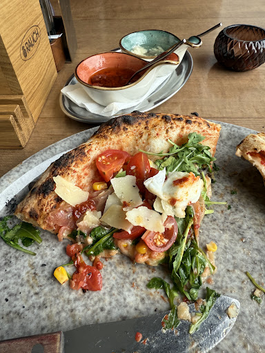 Der Geschmack der Pizzen bei "Pause am Berg" ist außergewöhnlich. Jeder Bissen ist eine wahre Freude für die Geschmacksknospen. Die frischen Zutaten und die sorgfältige Zubereitung machen einen deutlichen Unterschied. Insbesondere die Diavola-Pizza, obwohl sie köstlich ist, könnte für diejenigen, die es gerne scharf mögen, eine Spur mehr Schärfe vertragen. Trotzdem beeinträchtigt dies nicht die Qualität des Geschmacks – die perfekte Kombination von Tomatensauce, würziger Salami und geschmolzenem Käse sorgt für eine kulinarische Explosion.