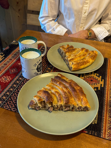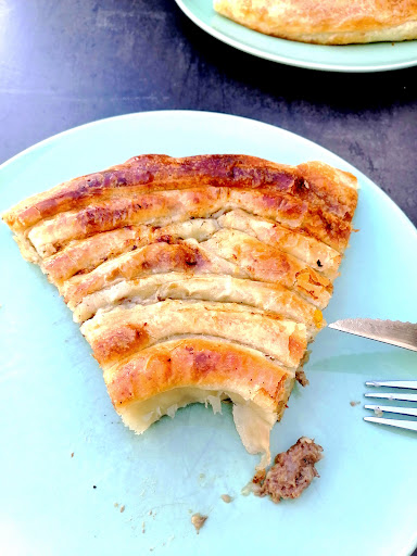 Read moreThis place offers Serbian pita, which is basically a big roll of puff pastry like dough ( not as brittle) filled with spinach, cheese, potato or meat coiled in a round shape. They sell it by portion ( the equivalent of a large pizza slice) for 3e something. You can eat it there ( they only have one or two tables, this is not really a restaurant) or have it to go. It's always fresh and hot and in my opinion, rather delicious, I live buying an entire pan whenever I...