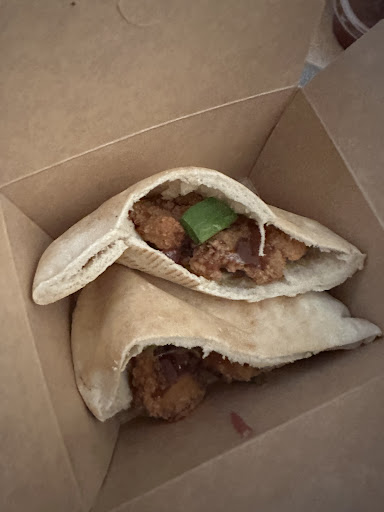 Wir hatten uns auf Baos gefreut – kleine, gefüllte, asiatische Dampfbrötchen, die für ihren besonderen Geschmack und ihre Textur bekannt sind. Doch als die Lieferung ankam, bekamen wir stattdessen ein frittiertes Hühnchen in einem Pita-Brot. Dieses Gericht entsprach überhaupt nicht dem, was wir bestellt hatten und war ein völlig anderes kulinarisches Erlebnis.