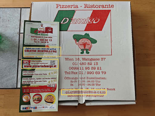 Read moreAlso Vorweg möchte ich sagen das die Pizza ansich sehr gut geschmeckt hat. Einzig die Zustellung war ein Horror. Ich habe gestern Abend um 20: 26 eine Bestellung aufgegeben da ich einige Dinge zu tun hatte war dies eine gute Möglichkeit. Die Ankunft der Pizza wurde in 45 Minuten Angekündigt was eine erträgliche Zeit gewesen wäre. Allerdings kam die Pizza erst um 22.: 35 und der Lieferant hatte nicht daran gedacht auch nachdem ich ihn auf die Verzögerung angesprochen hatte mir eine Preisreduktion anzubieten er war sehr freundlich und hat sich nett entschludigt allerdings werde ich beim nächsten mal nicht mehr bei dieser Pizzaria bestellen.