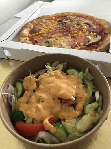 Altough the reviews may not be the best, the pizzas were supriesingly good, and then staff was kind. The pizza dough is very delicious, thin and crispy on the edges, the toppings are delicious too. There is no on-site dining, but we were able to wait for our pizzas and the hamburger, which was always excellent. We waited maybe 15 minutes for it to be ready. The chef spun the dough in front of us, and we could even hear a musician playing the guitar in the...