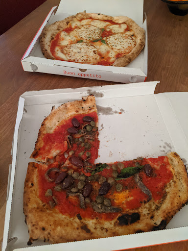 Read moreWarum man für eine solch derart angebrannte Pizza Schlange stehen muss, bleibt für mich für immer ein Rätsel! Einen Stern gibt es für die nette Bedienung. Der Geschmack war trotz intensiver Bemühungen des Entfernerns des angebrannten Bodens, sehr angebrannt und bitter. Jeder der glaubt dass eine echte italienische Pizza so angebrannt schmecken muss, war noch nie in Italien. Auch dort gibt es solche, aber in der Regel mögen es auch die Italiener nicht wenn der Boden schwarz ist. Wer mag das schon?