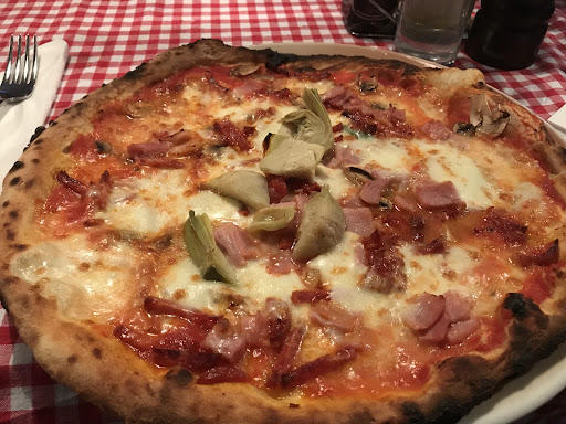 Really delicious pizzeria with kind Italian staff! I went here with my husband and a friend on a Tuesday night with no reservation. Luckily, as we walked in a table was leaving so we got their table. The menu has a good selection of pizzas. There is also an English menu so no worries if you don’t speak German or Italian! The three of us ordered a pizza each. I would say it was a regular wait time also because the place was full for dinner. I had ordered the pizza with salami, ham, artichoke and mozzarella. The pizza was cheesy and full of flavor! It tasted just like pizza in Italy! My husband and friend also liked their pizzas. I would suggest going back for their friendliness, tasty pizzas and comfortable atmosphere. I do suggest a reservation for...