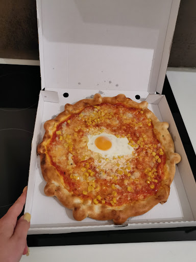 Am nächsten Tag als wir die Pizzereste essen wollten war das Ei schimmelig und nicht mal die Katzen wollten die Reste essen....