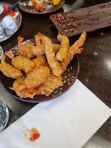 The food served was of such poor quality that it clearly hadn’t been checked before reaching the guests. We were served shrimps that had an unpleasant smell and a strange aftertaste—likely due to improper cleaning or them being old. The chicken wing we received was raw, and instead of the usual two smaller wings, we were given one oversized, undercooked wing. The sweet potatoes were soggy and undercooked as well. The sushi, which is typically fresh at other Ebi locations, was stale and far from acceptable.