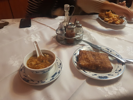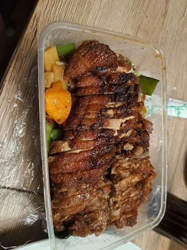 Die knusprige ente nach Art des Hauses war gut und saftig aber nicht mehr knusprig, kann auch nicht funktionieren wenn es im Plastik Gefäß schwitz, daher gibt's auch kein herum meckern. Auch mit dieser Portion wird nicht gespart.