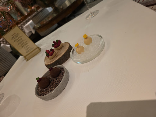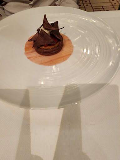 CONS: We got the impression that service was understaffed. It took about 45 minutes between courses, so we were there for 5.5 hours. Similarly, for everyone who got the wine accompaniment, the glasses were only filled (with small pours) with each course, so we primarily drank water for the 45 minutes before the next plate was brought out. To our surprise, we were each charged 38€ for the water as well. I felt that the pricing in general was not transparent, as we were each charged about 100€ more than we were anticipating. Dinner dragged on so long it actually became comical, like we were in episode of Fawlty Towers. At the table next to us, one of the diners got up to refill her wine glass from the bottle they purchased since the waiter only appeared every 30 minutes or so, and the waiter came over to let her know it was his job. Overall, it felt like fine dining in a prison, where we mostly ate bread and (expensive) water between small courses every hour. It was definitely the weirdest fine dining experience I...