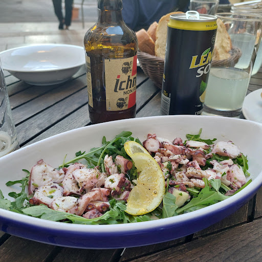 Read moreThe 3 of us went for dinner there. We were refused to sit inside and directed to the terrace across the street. Allowed to sit only on the lower part of it. It was hot outside. We ordered 4 different dishes. The food came fast and it was ok. However, the service was very unfriendly. We wanted to order more drinks and some sweets, the 3 waiters simply dissapeared. Then we decided to leave and waited 20 minutes for the invoice. Only cash payment. Not even a thank you or greeting when you leave. The table was dirty. The beer was served in a wine glass. The luke warm tap water with the lemon slice inside does not fit...