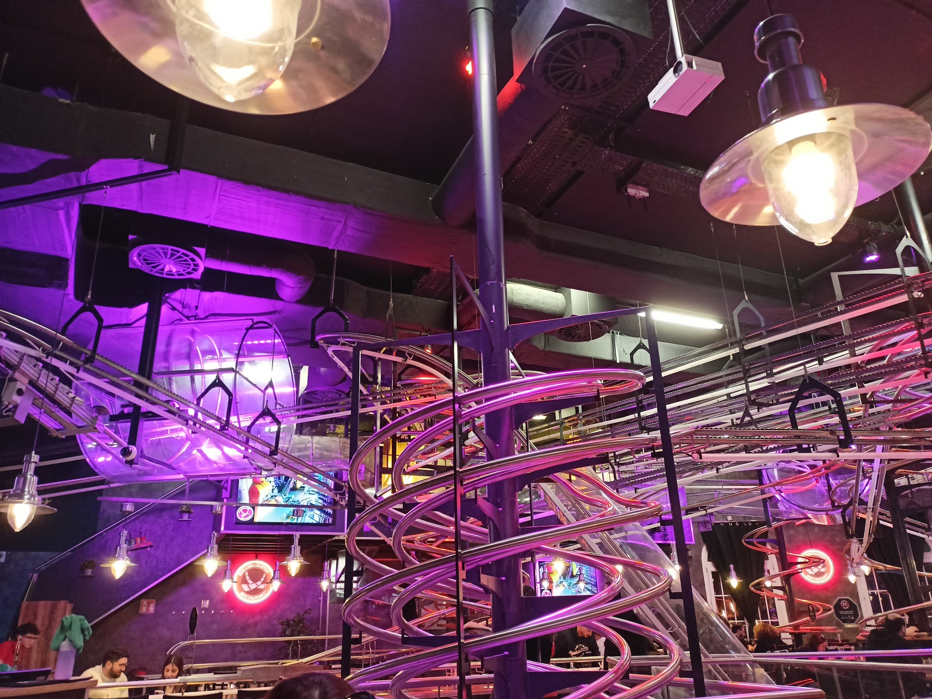 If you’re looking for a dining adventure like no other, the Rollercoaster Restaurant in Vienna is a must-visit! From the moment you step inside, you’re greeted with a vibrant, futuristic atmosphere that sets the tone for an unforgettable experience. The unique concept of food and drinks delivered via a network of thrilling rollercoaster tracks is both mesmerizing and exciting—it feels like a show within a meal!
