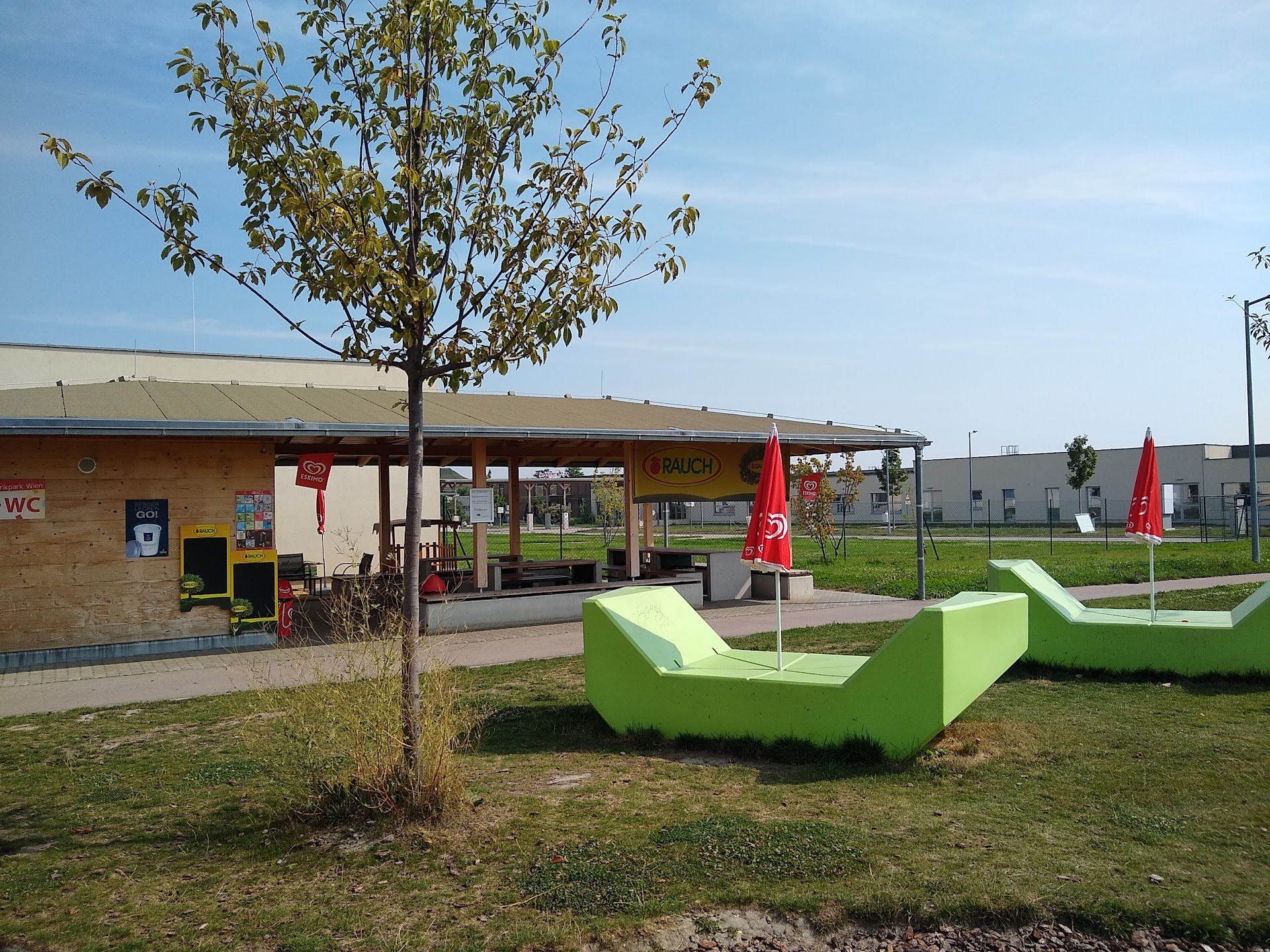 Verstehe die ganzen schlechten Bewertungen nicht. Es ist ein Imbissstand und kein Haubenrestaurant. Wir hatten mit den kids Hot Dogs und Pommes und die Qualität war total OK. Das Eis ist von Bortolotti und Spitze. Das einzige was ich anzumerken hätte ist das es etwas sauberer sein könnte. Wir waren die ersten Gäste und die Aschenbecher waren noch vom Vorabend oder den Morgenstunden voll. Aber alles in allem ein schöner Ort für eine Pause nach dem Spielen im...
