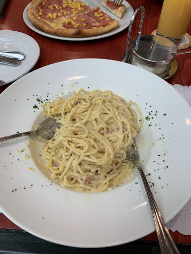 Read moreIn dieses Restaurant werde ich nie wieder gehen. Wir haben fast eine Stunde auf unser Essen gewartet, obwohl nur vier Gäste im Lokal waren. Das Essen war eine Enttäuschung: Die Pizza war sehr trocken und extrem salzig, der Teig schmeckte eher nach einfachem Brot als nach Pizzateig. Die Pasta erinnerte geschmacklich an eine Tomatensuppe und war ebenfalls versalzen. Der Parmesan wirkte, als hätte er schon seit zwei Wochen offen gestanden – man konnte sehen, dass er bereits mehrfach angekratzt war. Außerdem haben wir dreckige Gläser bekommen. Das Personal war zwar sehr freundlich, aber der Rest war eine reine...