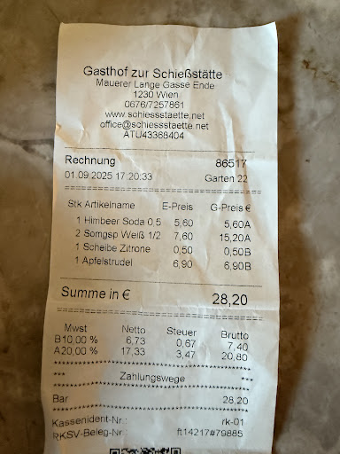 Read moreDie Suppe und die Frankfurter waren gut. Nur: Wir waren spontan eingekehrt und hatten beim Bestellen (wurde elektronisch aufgenommen) vergessen zu fragen, ob man mit Karte bezahlen kann. Nachdem wir mitbekommen hatten, dass nur bar möglich ist, zählten wir unser Kleingeld zusammen und dachten, das könnte sich ausgehen. Dass für ein großes Soda-Zitron 5 (!) Euro verrechnet werden würden, mehr als für die Suppe oder die Würstel, hatten wir nicht erwartet. Letztendlich hatten wir 3,- zu wenig dabei. Also mussten wir den Führerschein (oder einen anderen Ausweis) da lassen und, verabschiedet mir den Worten: "Da haben Sie heute gleich noch ein bisschen mehr Bewegung", vom Lokal erst einmal bis zum Maurer Hauptplatz gelangen, um Bargeld zu beheben. Das bedeutete einen Marsch durch den Wald zum Auto (zum Glück ...), dann ins Zentrum fahren, zurück zum Parkplatz und wieder durch den Wald spazieren. Mein Mann ist Italiener. Völlig unverständlich für ihn, dass bei so einer Summe nicht eine gastfreundlichere Lösung möglich war ("Kommen Sie doch so bald wie möglich wieder und bringen Sie uns die 3,-") Gerne wären wir sogar mit Anhang noch einmal gekommen und hätten sicher noch mehr dagelassen. Nur ein Soda um 5,- im Wald hätten wir nicht mehr...