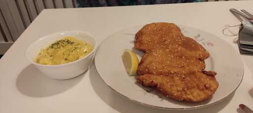 The schnitzels were mediocre and certainly nothing spectacular. The cutlets were thin and a bit sour.