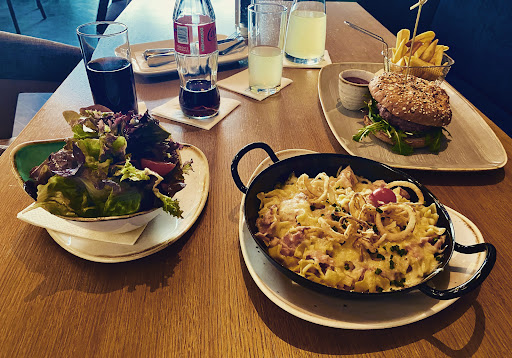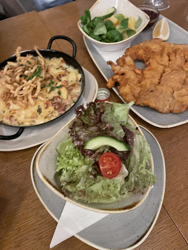 Read moreMeine Freundin und ich haben dieses neue Restaurant gestern -in der Eröffnungswoche- besucht und festgestellt, dass hier sehr wohl im Service als auch in der Speisenqualität noch einige Luft nach oben ist. Wir hatten überbackene Schinkenfleckerl, die noch mindestens fünf Minuten im Ofen gebraucht hätten, um mit fester Konsistenz (sie waren etwas flüssig) und knusprigem, dünklerem Käse bei mir anzukommen und wirkten (und waren)dadurch farblos. Der Blattsalat war etwas überzuckert. Der vegetarische Burger war solide, hätte aber noch etwas „aufgepimpt“ werden können, die Pommes zu wenig knackig. Die Nachspeisen - Erdbeertiramisu und warmer Schokokuchen mit Eis und Beerenspiegel schmeckten sehr gut. Beim Service kam statt dem bestellten Cola Zero ein normales, wurde aber anstandslos ausgetauscht, statt dem Capuccino eine Melange…. grundsätzlich netter Service, aber auch nicht mehr. Das Lokal war ungefähr halbvoll, dafür stand das Leergeschirr zu lange am Tisch. Die Speisekarten sind sehr schön in ihrer Gestaltung, vom Inhalt bieten sie so lala - von allem ein bisserl was: Hausmannskost, Fisch, Burger, Kleine Speisen für zwischendurch (Toast, Sandwich) und Frühstück. Keine High- und Downlights. Fazit: hoffentlich nur Anfangsschwierigkeiten bei Service und Speisen. Es sollte mehr Augenmerk auf ein schönes Anrichten auf den Tellern gelegt werden, es wirkt etwas lieblos. Das Lokal ist modern in dunklen Farben eingerichtet, Sitzbänke sind bequem, Tische ausreichend groß. Die Bar wirkt gemütlich und war auch frequentiert. Wir werden in einigen Wochen nochmals kommen....