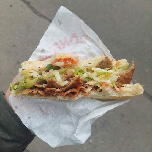 4,9 Euro für Kalbkebab, superweiches rundes Brot, gute Portion. der Spieß sah ganz gut angebraten aus, aber dadurch dass es stark gewürztes Faschiertes Fleisch ist (Hackfleischspieß) und kein geschichtetes Fleisch leuchtet es eher in hellbraun, als in der sonst typischen dunkelbraunen Farbe. Neben dem Spieß steht ein riesiger Warmhalteelektrogrill mit viel vorgeschnittenem Fleisch in langen zusammenhängenden Streifen. Leider wurde mir nichts frisch heruntergeschnitten, aber das macht nichts solange das Vorgeschnittene wirklich frisch ist und schön warm gehalten wird. Und das habe ich vermutet, denn das Lokal ist sehr sauber und alles sieht wirklich superfrisch und ordentlich aus. Das ist eben kein Imbiss, sondern ein richtiges türkisches Restaurant (wenn auch sehr klein) und man bereitet sich wohl schon auf den Andrang zu Mittag vor. Das Fleisch selbst war OK, würde ich auch alleine pur essen. Es ist aber stark gewürzt und hatte überhaupt gar keine Grillaromen - es hat nicht nach typischem Kebabfleisch geschmeckt. Knusprig war es auch an keiner einzigen Stelle. das Brot war sehr gut, ich mag diese weichen Brote. das größte Manko bei diesem Kebab war definitiv die Yoghurtsauce. Während ich von anderen Bewertungen bereits Fotos einer dicken Yoghurtsauce gesehen habe, war bei mir nur Yoghurtwasser im Kebab. und zwar wirklich NUR das Wasser. Bereits vor dem ersten Bissen hatte ich unten in der Spitze des Kebabpapiers 2 Daumen breit das Yoghurtwasser. Unmöglich diesen Kebab ohne Patzen zu essen. Ich möchte mir gar nicht ausmalen was passiert wenn sich den jemand zum mitnehmen bestellt und einfach so in die Tasche/Rucksack steckt... Dadurch dass sie wirklich so flüssig wie Wasser war, war nichts davon im Kebab - es ist einfach durchgeronnen und hat das Brot und das Papier aufgeweicht. Das schlimmste daran ist aber dass es auch nur nach Yoghurtwasser geschmeckt hat - nichts was ich mag! Ich denke aber das ist - zumindest laut Bildern - nicht immer der Fall. Darf aber dennoch nicht passieren. So eine dünne Yoghurtsauce habe ich wirklich noch nie in meinem Leben bekommen. nur um das hier nochmals zu untermauern, das war keine Sauce, das war wirklich nur das Wasser was man normalerweise oben am Yoghurt hat. die scharfe Paste war eine Paprikapaste schätze ich, definitiv nicht scharf und hat mich auch sehr gestört wegen dem intensiven Eigengeschmack. Würde ich nicht mehr reingeben lassen. das Lokal wie gesagt ist sauber und schön, der Chef sehr freundlich und ich würde hier gerne mal a la carte Essen gehen. Fazit: die Qualität der Zutaten stimmt, das Gesamtprodukt hat aber große Schwächen. die rote Paste unten im Brot mag ja vielleicht Geschmackssache sein, aber die superdünne Yoghurtsauce geht gar nicht und hat den Kebab...