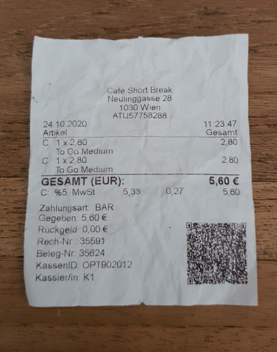 Read moreIt scores some real sentimental points with me. It looks like one of those cozy cafés in a quiet Midwestern town where a local cop might stop by while investigating a UFO sighting, you know what I mean? Or the charming cafes in American sitcoms—something about it reminds me of Café Nervosa from Frasier, which I’ve always held dear. I’ve been searching for my own version of Café Casa Nova for years, and I think Short Break might be the closest thing to that in Vienna. Quaint, simple, familiar—tucked right into the corner of your day, inviting you to sit, zone out, and entertain half-formed, pseudo-intellectual thoughts. The food is decent. The staff is friendly, to a point. And...