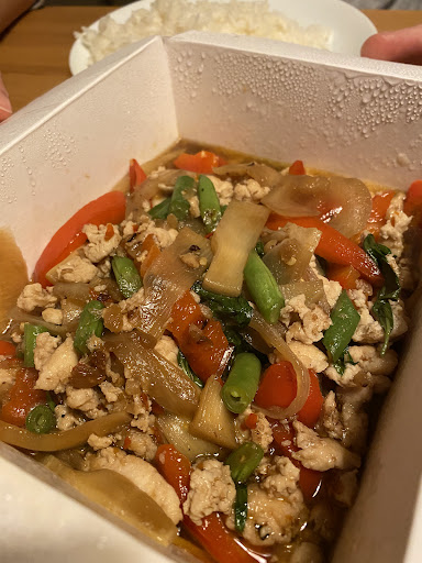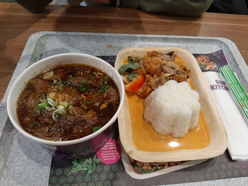 First thing first, kudos for using paper box for the takeaway and also the gigantic portion. But sadly they do quantity instead of quality. We ordered Pad Ka Prao chicken and Pad See Ew chicken. Pad See Ew was way below the bar. I’m actually okay with substituting the real deal with local veggies and ingredients but when it comes to the taste it has to hit the right notes. None, they missed it all, the charred scent of typical wok stir fry was just not there(at all), the veggies soggy and the chicken dry. The consistency was too watery to be Pad See Ew. The only thing I noticed from the first bite to almost the last was extreme sweetness. They forgot to give us the seasoning too. Anyway, Pad Ka Prao was quite decent. Again, sweet but decent. Westernized to fit the locals’ taste buds. My suggestion is to NOT order anything stir-fried at this place. But if you don’t mind Pad Thai that has onions in it, then be my guest. So stick with curries maybe? Not that I know if they’re any good but it’s just easier to get a curry right than the other stuff in my opinion. It’s hard to go wrong with fresh quality chili paste and instant coconut milk. All in all, It’s not bad for a grab-and-go-at-the-train station kinda food but it’s...