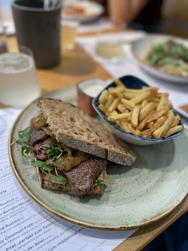 Italienisches Restaurant im Einkaufszentrum Riverside, in unmittelbarer Nähe zum Bahnhof Liesing. Saphir und Zwickl Bier von Zwettler in der Karte sowie insgesamt 5 Sorten Wein. 8 Pizzavarianten verfügbar - davon 3 in vegetarischer Variante. Weiters noch 5 Pastavarianten - davon 2 in vegetarischer Variante und 4 Nachspeisen. Die Auswahl ist also nicht gerade berauschend. Doch beginnen wir bei der Vorspeise. Die Karte enthält keine einzige Suppe, das ist mir bis dato noch nirgends untergekommen. Aus diesem Grund bestelle ich das Pane Rustico - getoastetes Brot mit Olivenöl. Dieses schmeckte zwar gut - nur wurde dieses ohne Teller in einem eigenartig anmutenden Beutel serviert. Wenn sowas gemacht wird wäre es durchaus angebracht zumindest Erfrischungstücher dazu zu reichen, damit man die Möglichkeit erhält sich die Hände säubern zu können. Doch nun zur Hauptspeise: Pasta mit Basilikum und Mascarpone. Auch dies schmeckte gut. Allerdings stellt sich die Frage, ob hinsichtlich der Portionsgröße, außer höchstens Kindern, überhaupt irgendwer satt wird. Selbiges gibt für die Nachspeise, die Italienische Dolci Kombi. Ein mini Stück Kuchen mit einem kleinen Espresso. Positiv war übrigens, das die Tische mit Salz und Pfefferstreuer ausgestattet sind. Und auch die vor dem Eingang abgestellte Vespa ist schon ein Hingucker. Das Servicepersonal hat übrigens gut und vielversprechend begonnen. Trotzdem seltsam, gegen Ende hin, als das Lokal immer leerer wurde, ist nicht einmal mehr mein Tisch abgeräumt worden. Fazit: Essen gut aber wenig mit augenscheinlichen Mängel gemäß Bewertung. Folglich war meine...