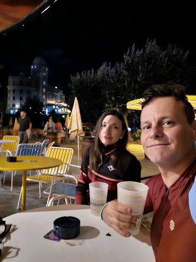 The atmosphere is cool. A beach right in the center of town is just a cool place to be in summer. The food is also alright. What is not good is the horrible service. The guys/gals picking up the used dishes are great. What is not great is the bar staff. You have to pick up the dinks yourself and for that you have to wait in line for sometimes up to 15 minutes. And all that for getting regular overpriced bottled beer (no tab beer available). And the audacity of the staff to demand a tip (with signs and words) after each beer is just out of this world (the card machine also asks for that if you did not add one verbally before). For what should I tip? For handing me an overpriced beer from the fridge? For the mediocre Aperol from a warm glass? For chatting with your colleagues for 3 min despite the 10m long queue? No, that is defently something that shifts the experience from good to mediocre at best. I'd like to tip the dish...