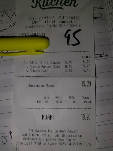 Read moreIch schreibe normalerweise nie schlechte Rezensionen, denn Fehler können passieren, es ist menschlich, aber mein abendlicher Besuch gestern (12.01.25) in der Swing Kitchen, Schottenfeldgasse grenzt an Abzocke. Bestellt habe ich einen Swing Burger mit extra Bacon, 1x Chili Cheese Nuggets, 1x Süsskartoffelpommes und 2x den Charly BBQ Dip. Dass man die Sauce extra bestellen und bezahlen muss war mir bereits bekannt, finde aber, dass man bei einem Preis von 5,20€ für die Süsskartoffelpommes ruhigen Gewissens, trotz Inflation, einen Dip inkludieren könnte. Die eigentliche Frechheit waren aber die Pommes selbst. Die Portionen waren nie groß, aber gestern habe ich eine handvoll (Anmerkung: meine Hände sind nicht groß, durchschnittliche Frauenhände) alter, kalter und labbriger, teils eingetrocknete Süsskartoffelpommes bekommen. Die kleine weiße Schale, in der die Pommes eingepackt waren, war halbvoll. Hätte ich vor Ort gegessen, hatte ich die Mitarbeiter gefragt, ob das ihr Ernst sei. Es machte den Eindruck, dass man die letzten Reste der Pommes zusammengekratzt hat, um ja keine neuen mehr machen zu müssen. Es war 20:00 zu diesem Zeitpunkt, es wäre zumutbar gewesen 2 Std vor Ladenschluss noch eine frische Ladung Pommes zu machen oder wenn nicht zumindest so ehrlich zu sein und zu sagen, dass die Pommes für heute Abend aus sind anstatt die abgestandenen Restln zu verkaufen. Extra Bacon kostet 1,90€. Na gut, auch nicht preiswert, aber dafür hätte ich mir schon 2-3 Streifen saftigen Bacon erwartet. Bekommen habe ich EINEN Streifen Bacon, der in der Mitte halbiert wurde und schön am Rand gelegt wurde, damit es mächtig aussieht. Dieser besagte Streifen Bacon war so hart, dass ich mir beim ersten Bissen die Ecke des Bacons in das Zahnfleisch gerammt habe und angefangen habe zu bluten. Desweiteren wurde die Sauce im Burger einfach vergessen, dementsprechend trocken war er. Gott sei Dank habe ich mir ja die zwei Saucen extra gekauft um 3,80€ … Das kulinarische Geschmackserlebnis blieb gestern Abend bei mir leider aus. Ich war bis dato immer zufrieden mit der Frische und Qualität, aber gestern war eine Vollkatastrophe. Der Laden war leer, es hat eine Gruppe aus 3 Personen vor Ort gegessen. Keine Lieferanten haben gewartet, keine anderen Kunden außer mir. Gewartet habe ich 3 Minuten nachdem ich bestellt habe. Das war gerade einmal genug Zeit für eine Duolingo Lektion. Lieber hätte ich, wie sonst auch immer, viel länger gewartet, aber dafür ein warmes und halbwegs frisches Abendessen erhalten.