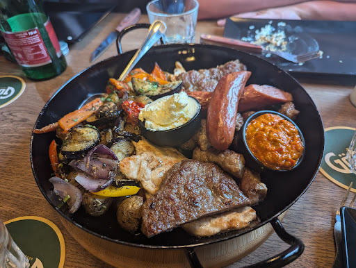 Read moreThe positive reviews were true. The moment we walked in, we were greeted with a smile. A gentleman took care of us was attentive, and answered all of our questions about the food. I have had a veggie burger before in the United States. This one was the next level up. I enjoyed all of the vegetables that were in the sandwich, as well what tasted like skillet, roasted potatoes. The ciabatta bread with soft, but had a great outer texture. My wife had fish and chips and it was actually under the finger food but both of our portion sizes were a good size. My wife said that her fish and chips were excellent. The woman that brought us our food was pleasant with a warm smile as well. We forgot to add the tip because this is our first trip to Europe & we keep thinking the tip line will be on the receipt. The man that seated us & graciously accepted what US dollars we had at the time. Excellent service, food, &...