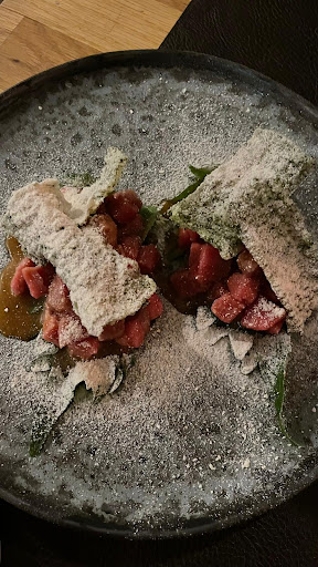 Read morewent there with friends who invited us, atmosphere small cozy very ok, tips for ordering food somewhat confusing, not helpful, food up and down, some dishes very good, some less/mediocre, wine recommendations and pairing as food, up and down, good ones and less pleasing ones, somewhat smaller selection of open available wines, service and comments ok, very few times a little bit too much, not...