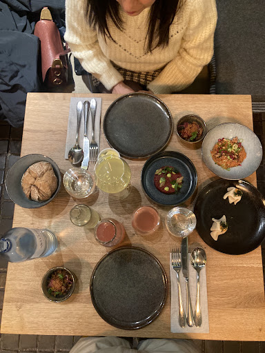 The food was meh in general. 1-2 side dishes were actually good and the rest of the menu was either below average or straight up bad. They came up with this marvelous idea of serving celery with celery sauce and sprinkle more celery on top with celery foam or whatever. Watched too much Chef's Table I guess because the celery was not the "star" of the dish, although it sounded very interesting. After leaving the place I had to eat again even before arriving home and I'm kinda thin, this should tell you about the portion size.