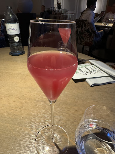 So first we were given a menu with no explanation how it worked (a menu on one page listing 6-7 dishes plus prices, some options and prices in the middle - 4 tasters = 78 Euros; 6 tasters a lot more, and so forth; plus wine paring at 40 Euros, and another menu on the third page with 6-7 dishes with prices next to them). Having humiliatingly had to ask the sniffy waiter (that looked just like Pete Townsend) how the menu works, he loosely explained what was expected of us. We did what we loosely thought was expected of us and ordered four courses each, and a glass of wine each - I picked a red for my partner, and when I chose one from a list that didn't specify it's colour, the sniffy Pete Townsend said 'Zat is a white wine' with an ever so slight curl to his lip. Perhaps I had deliberately chosen a white wine? But he scared me so I picked the same as the one I had chosen for my partner.