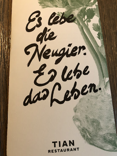 Read moreWir befinden uns im âHimmelâ, in der Himmelpfortgasse, wo uns das 8-Gang MenĂŒ erwartet. Kaum Platz genommen und mit dem Aperitif auf einen wundervollen Abend angestoĂen, saĂen wir auch schon vor dem ersten Gang. ZugegebenermaĂen hat uns die LautstĂ€rke der Musik, gleich von Beginn an, sehr gestört. Ich habe bereits in anderen Rezensionen gelesen, dass sowohl die Art, als auch die LautstĂ€rke der Musik, zum Konzept gehören. Wir aber unterhalten uns ganz gerne bei Tisch und brĂŒllen uns weniger gerne an ;-) Zudem war es aufgrund der LautstĂ€rke sehr schwierig, dem Servicepersonal bei der Vorstellung des Weins, oder des gerade servierten Gerichtes zu folgen. Das MenĂŒ: Die Auswahl der menĂŒbegleitenden Weine war exzellent getroffen und wirklich perfekt auf die Komponenten des jeweiligen Gangs abgestimmt. Viel Zeit, die jeweiligen Weine zu genieĂen, hatten wir jedoch nicht (siehe unten). Bis bei einem solchen MenĂŒ alle GĂ€nge serviert werden, vergeht selbstverstĂ€ndlich ein wenig Zeit. Das Servieren der GĂ€nge und das AbrĂ€umen der leeren Teller war mir persönlich aber viel zu hektisch und zu rasant. Die Hand des Servicepersonals, als auch meine Gabel, welche ich im Begriff war abzulegen, erreichten den leeren Teller fast zeitgleich ;-)