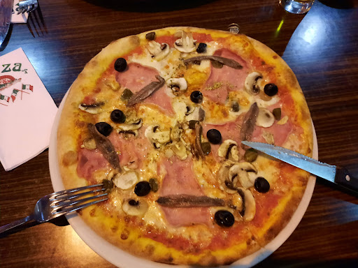 Read moreEin sehr nettes Restaurant mit sehr gemütlicher Stimmung und überaus netten Personal. Jeder Gast wird liebevoll empfangen und zum Platz geleitet. Die Küche ist quasi als Schauküche gehalten, zumindest kann man den Köchen und Köchinnen bei der Arbeit zusehen, was auf jeden Fall Lust auf mehr macht und appetitsanregend wirkt. Wir haben beide Pizza gegessen, die einen dünnen, aber nicht zu dünnen Boden hatte. Belegt war sie mit frischen, geschmacksechten Zutaten, die allesamt ihre eigene Note merkbar machten. Der Teig und der Belag war nicht zu salzig oder zu würzig, sondern mit verschiedenen Kräutern und der, womöglich hausgemachten Tomatensoße, geschmacklich sehr gut. Ob der Teig wirklich ein origninal italienischer „Lievito Madre“ ist, kann ich nicht genau sagen, definitiv aber kein gewöhnlicher, blähender Germteig. Was bei weiteren unsere Erwartungen übertroffen hat, war das Tiramisu. Nicht nur, dass es riesig war im Verhältnis zu den Nachspeisen die man sonst noch bekommt, es war auch sehr üppig und wirklich magenfüllend. Geschmacklich kräftig, nicht zu süß und jede Note, vom Kaffee bis hin zum Kakaopulver war sehr gut erkennbar. Jedoch ist es eine Kalorienbombe sondergleichen. Figurbewusste Gönner könnten sich auch eins teilen um trotzdem auf den Geschmack zu kommen. Bei den zwei Pizzen, die wir gegessen hatten, gibt es ernährungstechnisch keine größeren Einwände. Die Zutaten sind frisch und wenn man Gemüse auf der Pizza bestellt, bekommt man dies auch. Einzige Kritik, dass es keinen Vollkornteig zur Auswahl gab, dies haben jedoch auch die wenigsten Pizzerien auf der Karte. Als wir gingen wurden wir richtig nett vom Kellner und vom Küchenpersonal mit freundlichem Winken und einem herzlichem „Ciao“ verabschiedet. Dieses Gesamterlebnis ist schon seine 4...