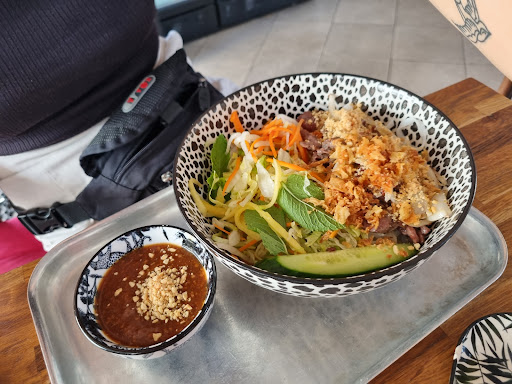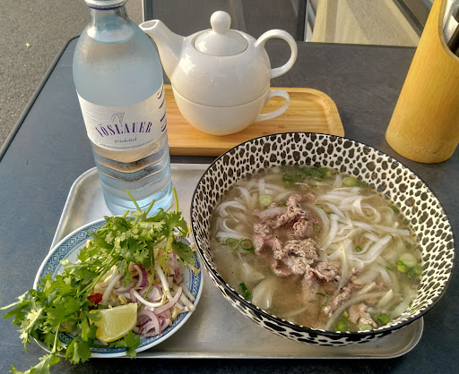 What a pleasant place this is. I am really happy that I decided to stop in. I googled Vietnamese restaurants in the neighborhood and I liked the reviews. I am pleased to say that the food was delicious, the service was fast and friendly, and the prices weren't too bad either. I had beef pho and a beef banh mi and they were both really good. The hot green tea was just right and overall I just really enjoyed myself there as a solo diner. I sat outside while I ate my meal and felt like I had my own little moment of zen. So nice, it was. Do yourself a favor and treat yourself to a nice Vietnamese food experience....