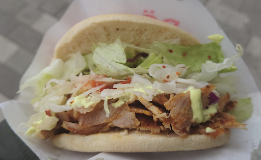 3 Euro für Hühner Kebab, weiches Brot, normale Portion. das Fleisch war sehr hell, zu wenig angebraten, aber der Grill war auf maximaler Stufe, so dass es gereicht hat dass sich das runtergeschnittene Fleisch nur einmal kurz vorbeigedreht hat. geschmeckt hat es gut, guter Durschnittsspieß. nicht zu trocken, nicht zu fettig, guter Hühnergeschmack, würde ich auch alleine ohne Beilagen essen. habe den Döner so bestellt "wie es am besten schmeckt". die Sauce war eine Art Curry-Remoulade. ich mag sowas normalerweise nicht im Döner, aber hier war sie nur oben drauf, also bei den ersten Bissen, und ich muss gestehen sie war verdammt gut. auch das Rot- und Weisskraut war genau richtig mariniert. freundliche Mitarbeiter, sauberes Geschäft, viele Kunden. Fazit: das Gesamtpaket hat wirklich positiv überrascht! es hat einfach geschmeckt und ich würde mir sofort wieder so einen...
