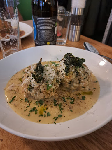 Read moreReally amazing vegan restaurant for trying the Austrian Cuisine without meat. You can get (almost) all the classics but vegan. Had the leberknödelsuppe, which was really good. nice, rich vegetable broth with a dumpling inside that has a really nice, soft texture and tasted almost like the non-vegan stuff (usually ground liver). As a main course, I had the Vegansl, which is a vegan goose filet served with red cabbage and either potato dumplings or dumpling made out of old bread. I had the potato dumplings, they were really nice textured and tasted great. The "goose" even had some sort of crispy skin on it, the gravy was also really good. The only downside was my beverage order: I ordered a bottle of prosecco which was promoted in the menu but I got a bottle of vino frizzante bianco instead. Tasted ok though but that's no prosecco. Pls get that right dear velani sisters and brothers :)