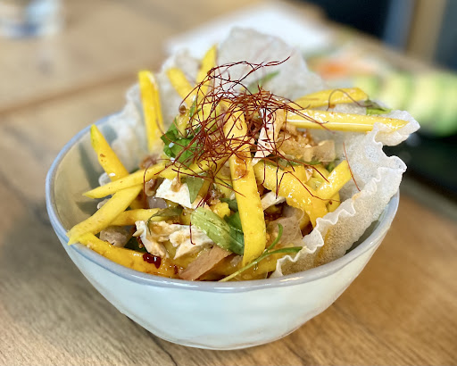 We shared three starters, each of which was a treat! The coconut soup is well balanced, the summer rolls with avocado are tasty (great sauce!) and the spicy mango salad is a culinary dream! Both of our main dishes, udon noodles with vegan seafood and tofu and the rice noodles dish with seitan and tofu were extremely tasty. Generous portions. The tiramisu at the end was also very tasty and rounded up everything perfectly. Fair prices, friendly service and outstanding food.