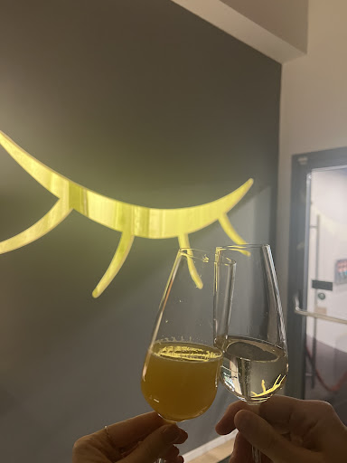 Gleich beim Eingang, nach der Anmeldung, konnten wir einen kleinen Aperitif in Form von Sekt und Sekt Orange genießen. Ob es etwas Antialkoholisches gab, weiß ich gar nicht. Ich nehme aber nicht an, dass es unmöglich gewesen wäre, nur einen Orangensaft zu bekommen.