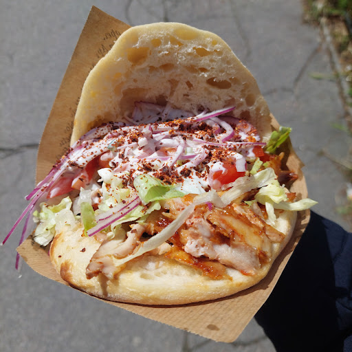 4,9 Euro für Hühnerkebab, rundes weiches Brot, Portion gut. ich war am Nachmittag dort und dennoch waren 3 Kunden vor mir und auch nach mir kamen welche rein. Der kleine Laden ist modern und sauber und die offene Front lässt es freundlich wirken und man kann sich gut anstellen und warten nachdem man bestellt hat. Es gibt Huhn und Kalb (Hackfleischspieß), beide Spieße sahen sensationell gut angebraten aus. Ich bin mir natürlich nicht sicher, aber ich denke der Hühnerspieß könnten sogar selbstgeschichtet sein, zumindest wurden oben noch Tomaten und Zwiebel auf den Spieß gesteckt. Das ist nicht nur optisch, sondern lässt den Tomatensaft außen über das Fleisch laufen wodurch das Fleisch noch mehr karamellisiert. Das Fleisch war Top! Eines der besten in letzter Zeit, würde ich sofort pur ohne Beilagen essen. Trotz des hohen Kundenandrangs wird per Hand mit dem Messer nur von den wirklich schön dunklen Stellen heruntergeschnitten. Alles richtig gemacht! das Brot ist leider ein selbstgebackenes Pizzabrot. Zwar total frisch und auch nicht so fest wie oft, aber trotzdem nicht toll. Erstens war es viel zu hoch, was man aber oft macht damit es nicht immer bricht/reißt beim Schneiden. Zweitens hat es viel zu viel Eigengeschmack. Man schmeckt leider bei jedem Bissen fast nur Brot und hat auch beim Kauen das typische Brotgefühl dass der Bissen im Mund immer mehr wird statt weniger. Viel zu viel Brot! Ich wollte ungelogen den Deckel abnehmen, geht leider auch nicht. Ist halt leider so mit diesem Pizzabrot, das ist einfach das schlechteste das man verwenden kann meiner Meinung nach. Bestellt wurde wie es am besten schmeckt, worauf hin es Eisbergsalat, rote Zwiebel und einen Tomaten-Gurken-Misch in den Kebab gab. Rotkraut wurde weggelassen. Wieso man Gurken zu den Tomaten mischt kann ich mir nur so erklären, dass ein Behälter zu wenig vorhanden ist. Oder mag wirklich die Mehrheit der Menschen Gurken im Döner? I doubt.. Hier ein Tipp von mir: Gurken ganz weglassen! Oder eben in einen eigenen Behälter damit man die Wahl hat. Es gab noch eine Cocktailsauce, ich habe aber die Yoghurtsauce bekommen. Diese könnte man auch noch ein klein wenig aufbessern, denn es hat wirklich nur nach Yoghurt geschmeckt. Ohne Kräuter, Salz oder Ähnlichem. Zumindest war es ein dickeres Yoghurt, so dass es nicht überall rausgelaufen ist. Belegt war der Kebab optimal, hier gibts nichts was man besser machen könnte. Sauce kam ins Brot, dann wurde der restliche Inhalt sorgfältig reingelegt so dass bei jedem Bissen alles vorhanden war. Verkäufer sehr freundlich! Fazit: das Fleisch war Top! Brot und Sauce spielen aber leider nicht in derselben Liga. Das gleiche Fleisch in einem klassischen Fladenbrot und der Kebab wäre gesamt einfach nur top! So war es leider zu brotlastig und ich muss 1 Punkt abziehen. Ernsthaft, das war ein spitzen Kebab! Probiert es vielleicht selbst mal mit einem anderen Brot aus und meldet euch bei mir wenn es so weit ist:) Wenn der Rest dann immer noch so gut ist, gibts 5 Döner von mir. Gerne...