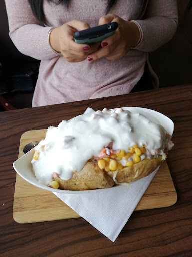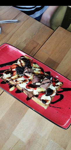Read moreIch muss gestehen, dass ich noch nie eine Rezession verfasst habe, aber in dem Fall mache ich ne Ausnahme. Das Lokal ist eine absolute Katastrophe....Wir wurden zunächst einmal nicht begrüßt...die Tische waren schmutzig und von der allgemeinen Hygiene der Mitarbeiter ganz zu schweigen. Überhaupt schienen die Mitarbeiter, obwohl reichlich vorhanden( ich zählte 3 Mitarbeiter ausserhalb der Bar) nicht sonderlich motiviert zu sein und mit ihrer Tätigkeit schlichtweg überfordert zu sein...als es dann ums Bestellen ging reichte man uns einfach ein I Pad mit Bestellsystem, jenes I Pad gab nach 5 Minuten seinen Geist auf...eine klassische Speisekarte gab es scheinbar nicht...Ich bestellte eine Offenkartoffel mit diversen Topings, welche nach 55 Minuten!!!!!!!!!!! Erst fertig wurde und dennoch absolut kalt und ungenießbar war. Zu meiner ungenießbaren Offenkartoffel wollte ich mir ein Bier bzw einen Spritzer gönnen, aber auch dies war nicht möglich da dies sich mit dem Glauben der Inhaber scheinbar nicht arrangieren lässt. Auch das Boniersystem und die Tischordnung scheinen nicht zu funktionieren, die Bedinung schien nicht zu wissen wohin mit der Bestellung...selbst das anschließende Zahlen schien Schwierigkeiten zu bereiten. Ohne einen entsprechenden Bon den man ohne unser Wissen auf unseren Tisch legte, schien ein Bezahlen nicht möglich. Fairer Weise muss ich gestehen, dass ich die Waffle nicht probierte, da ich einfach keine Lust mehr hatte auf eine Nachspeise.