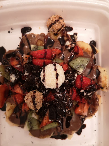 Ordered through Lieferando. They swapped out the strawberry topping for pomegranate seeds without notice, but despite not liking pomegranate, that was an enjoyable waffle. 🧇 The waffle batter - through the roof, taste and texture wise. Arrived quickly and in a big enough box to not get squished. Delivery waffles are a bit of a gamble, but it got here looking appealing and not even remotely soggy. Good amount of sauce and toppings, I'm overall...