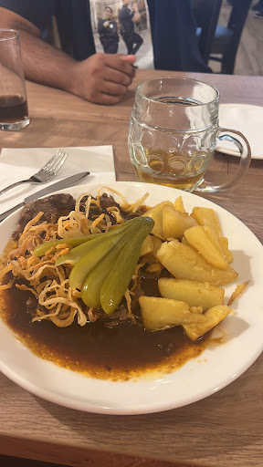 Das Bier, das ich aus der beeindruckenden Auswahl an Getränken auswählen konnte, passte hervorragend zum herzhaften Geschmack des Zwiebelrostbratens. Der Service war aufmerksam und freundlich, und das Personal gab bereitwillig Empfehlungen zur Bierauswahl.