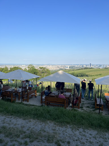 Read moreDefinitely lives up to the 4.7 rating currently shown on Google. Not only are the wines good, and in the fall, so is the Most and Sturm (young, unfiltered wine/juice) but the view may be the best in Vienna. Tucked deep into vineyards about 1000 vertical feet above downtown Vienna, the panorama is amazing, and sitting at wooden benches and tables is breathtaking. They have a very simple selection of open sandwiches but also offer an interesting vegan option. They are usually only open Fri-Sun and if there is rain in the forecast they won't even open. But nowhere better to stop when hiking the Vienna...
