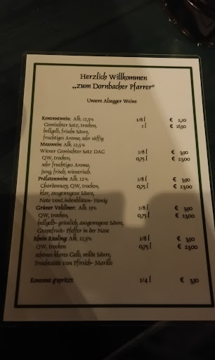 Ein bezaubernder Innenhof, hervorragende Weine, gutes Buffet, vor allem der Beinschinken mit Salzstangerln und sehr gepflegter Käse. Allerdings ist beim Buffet Geduld angesagt. Leider kommt die Musik immer so spät und wenn man rückwärts einen Tisch hat, kommen sie vor der Sperrstunde..... Eine glatte Empfehlung, aber unbedingt reservieren. Allerdings werden im Garten keine Reservierungen angenommen, was den Besuch etwas kompliziert macht, denn einer muß bereits 20 Minuten in der "Pole position" stehen, um dann Punkt 17 Uhr reinstürmen zu können. Das ist besonders unangenehm, wenn man eine größere Gesellschaft ist oder mehrere Personen einladen möchte. Niemand will an einem schönen Sommertag im Keller sitzen. Ansonsten sehr empfehlenswert, immer...