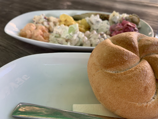 Mir wurde der Wulfisch-Teller empfohlen, da ist sozusagen von allem etwas drauf und ich kann die Empfehlung nur weiter geben. Krabben- und Heringssalate mit extrem hoher Qualität, sowohl was die Produkte betrifft als auch den Geschmack.
