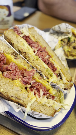 Now, is their stuff as good as some new york corner burger place or deli? Of course not. The bread isn't quite new york rye, the pastrami is great but not excellent, and they could go a bit easier on the cheese and harder on the sauerkraut. But boy are they close, so close in fact, that I happily give them that 4 star rating for the whole experience.