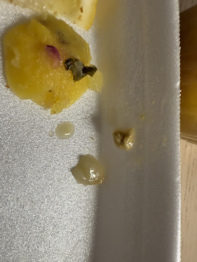 Als sich der Kellner wieder blicken ließ und fragte, ob es auch schmecke, informierte ich ihn w.o.; die “Bescherung” (Haufen an Bastrückständen auf dem Teller) konnte er selbst sehen.