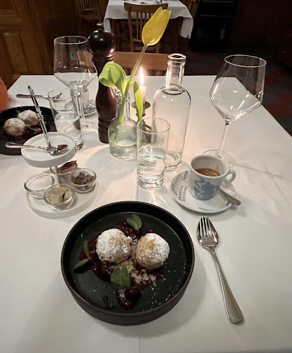 Great place, food needs a bit of attention, though. Great service, very nice people, lovely atmosphere. Leberknödelsuppe was just ok, not better, but the star of the show was the schnitzel, which was excellent including the potato salad. The chocolate cake was disappointing though: tiny dry piece of cake, not much taste and the mango cream that came with it was cloying and did not taste of much altogether. Wine list and drink specialties on offer were all great and we loved the fact that they just let us sit as long as we wanted, no rush to get us out, even at closing time. So, all in all, great place but the food needs a bit of...