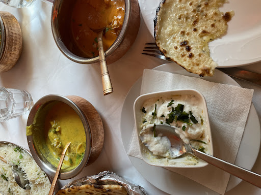 This, hands down, is the most indian restaurant I have ever been in. There's pictures of famous historical people everywhere. Everything glicens in sliver and metall and a very subtile indian elevator track is playing in the background. Howevs, this impression makes you feel like shaj rukhkhan himself is gonna serve your food while amittab bachan cooks it, hehe. After you feel even kinda' unconfortably touched, as you feel like in kind of an "stuff india in their faces" situation, you still hang on and await one of the various un-spellable dishes they offer. And sweet baby jesus, then the awe kicks in. The food is simply fantastic. It's like so tasty that you forgive even the stereotypical bollywood movie you feel like starring in as a backrole actor who pretends to have a meaningful conversation while some piece of "its your child, i have a weak heart, family is thicker than blood"- drama takes place as the main act. That said, I recommend mostly the dish "sizzler tandori" you get it served sizzling from heat on a heat plate. Best indian I ever had. Price is reasonable for the experience 😄So basically, don't miss the opportunity if you're...