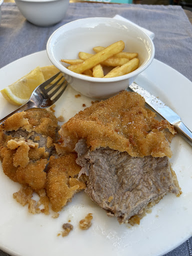 Our food took literally 35 minutes from ordering to come out, though given that the wait was about the same at all of the restaurants we went to in Vienna, I'm starting to wonder if that is just par for the course in this city. The meat of my dish was extremely tough - hard to cut and hard to chew, with a dry, tasteless flavor. I got through two bites of it before I had to stop. The potatoes and onions were done well, though, and the Wienerschnitzel was actually quite good. But all in all, unable to recommend any of the other...