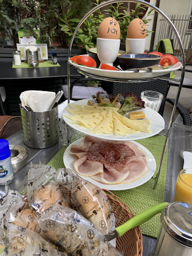 Edit: As a response to the, in my opinion, very unpolite and unprofessional response of the owner below I would like to extend my review. It took almost 40 minutes before we received our first tea, coffee and dishes. Ordering was difficult because our table's lady waitress actively avoided eye contact and we luckily managed to order partly with another waiter that walked by from another table. My father's coffee wasn't brought at all. I don't appreciate being attacked personally for a review - I don't claim to be perfect at my job but I take customer feedback as opportunity to improve myself instead of giving petty pseudo-subtle passive aggressive replies like the owner of this place. People work hard to have a nice vacation in the beautiful Villach area and should not be ashamed to give feedback when they have to sit for 20 minutes before their order is taken....